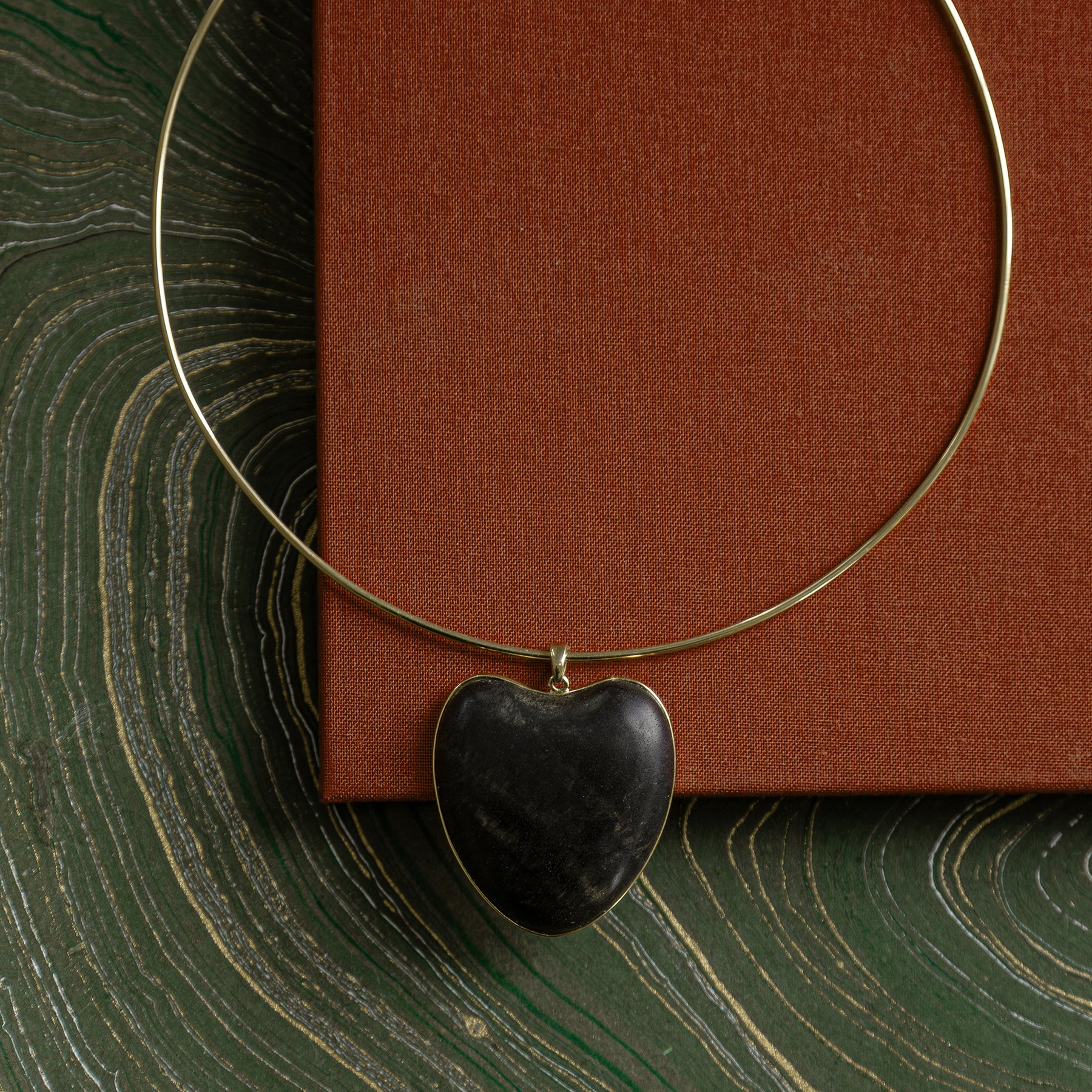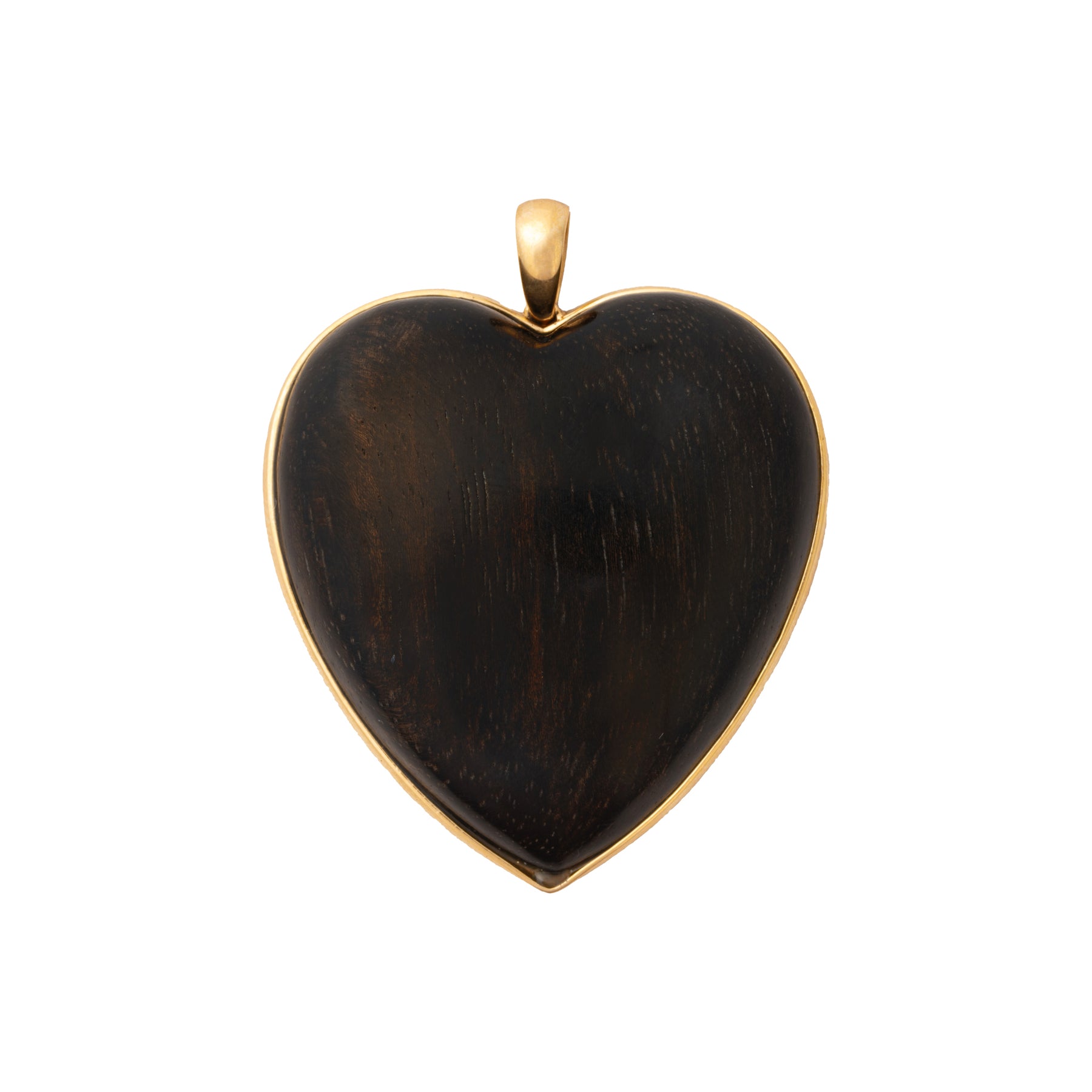 The Antonia Oversize Heart Pendant transforms a classic shape into a bold statement with its sculptural scale and natural materiality. Hand-carved from deep Black Ebony and framed in 14K yellow gold, this pendant is designed to anchor any chain with warmth, contrast, and presence.