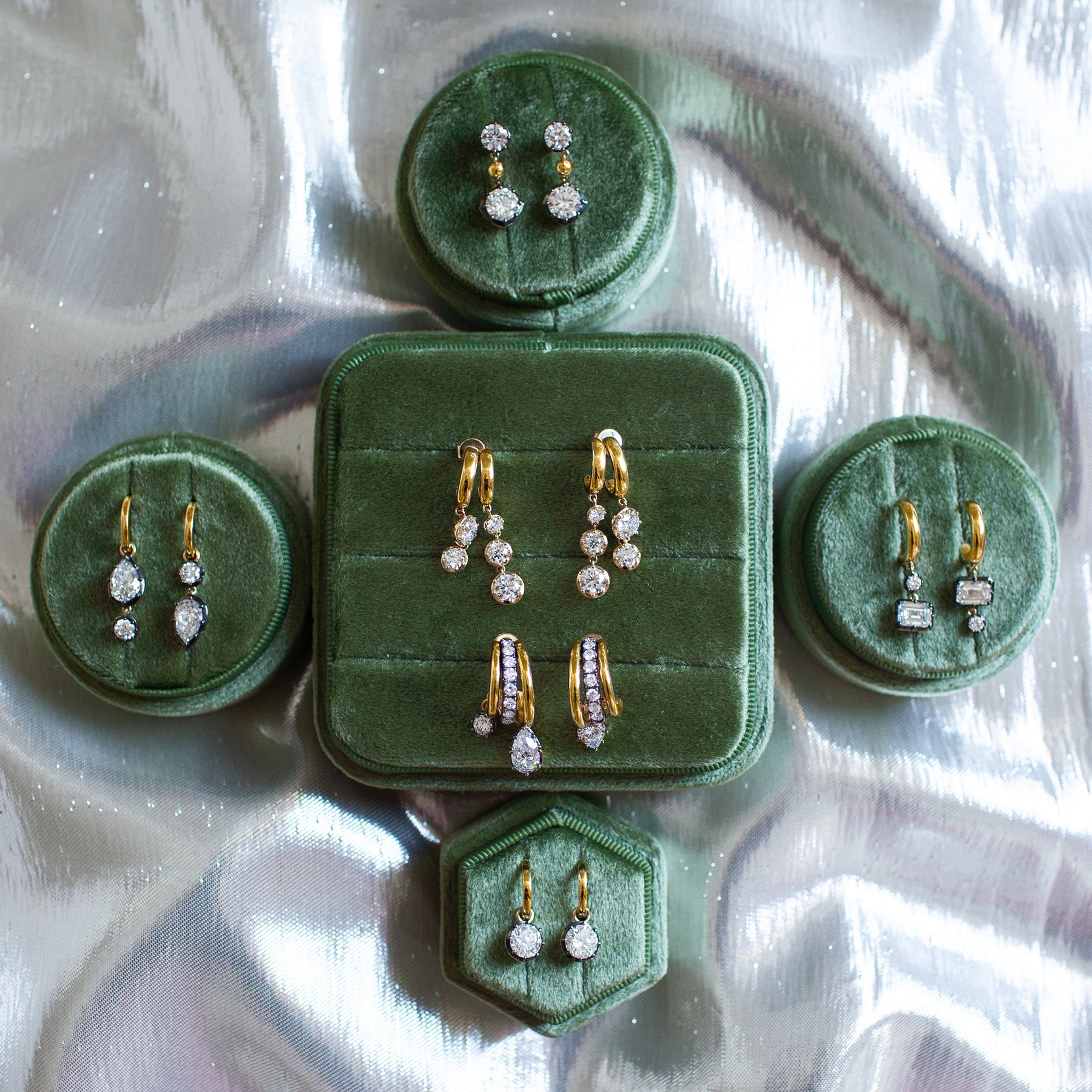 Emma Double Earrings with Round and Emerald Cut Diamonds