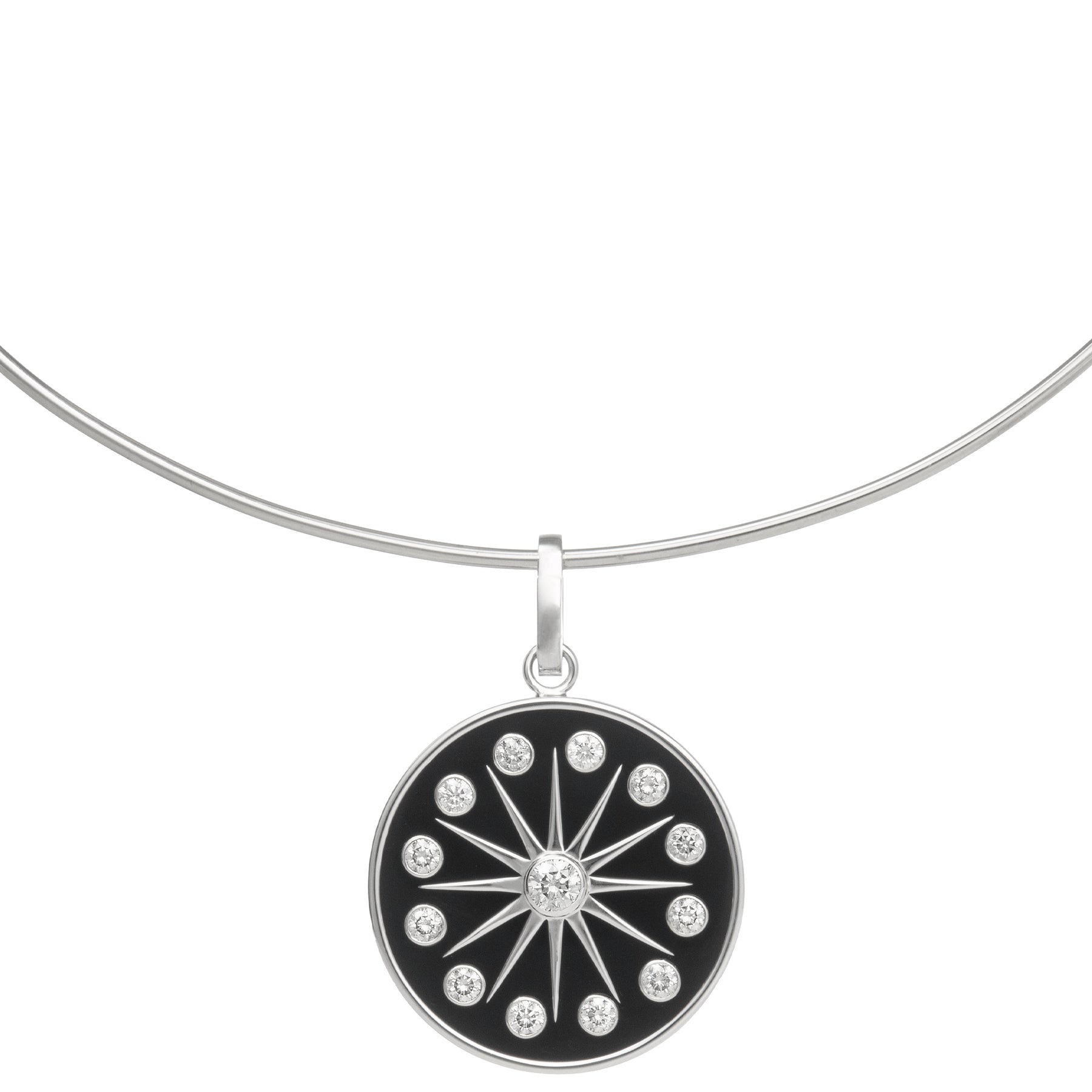 The Token Ray Pendant is equal parts classic and cool, featuring a polished  Onyx sunburst centerpiece framed by 1.34 carats of diamonds, all set in solid 14k white gold. Designed with a 16-inch chain and a 1.25-inch drop, this pendant delivers high contrast and refined simplicity—ideal for both casual layering and formal styling.