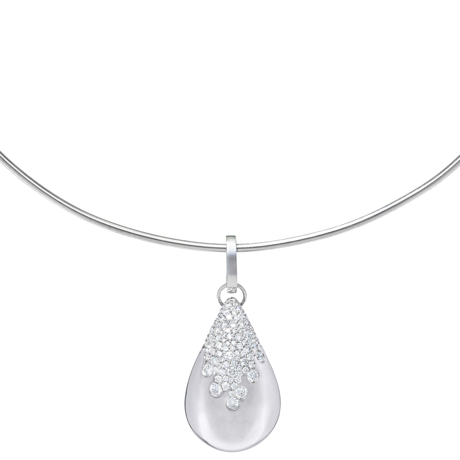 Diamond teardrop pendant necklace featuring a sculptural 18K white gold pendant set with 1.67ct of diamonds. Paired with a 16" 14K white gold choker, this modern diamond necklace showcases a tapered diamond pattern and smooth, polished form.