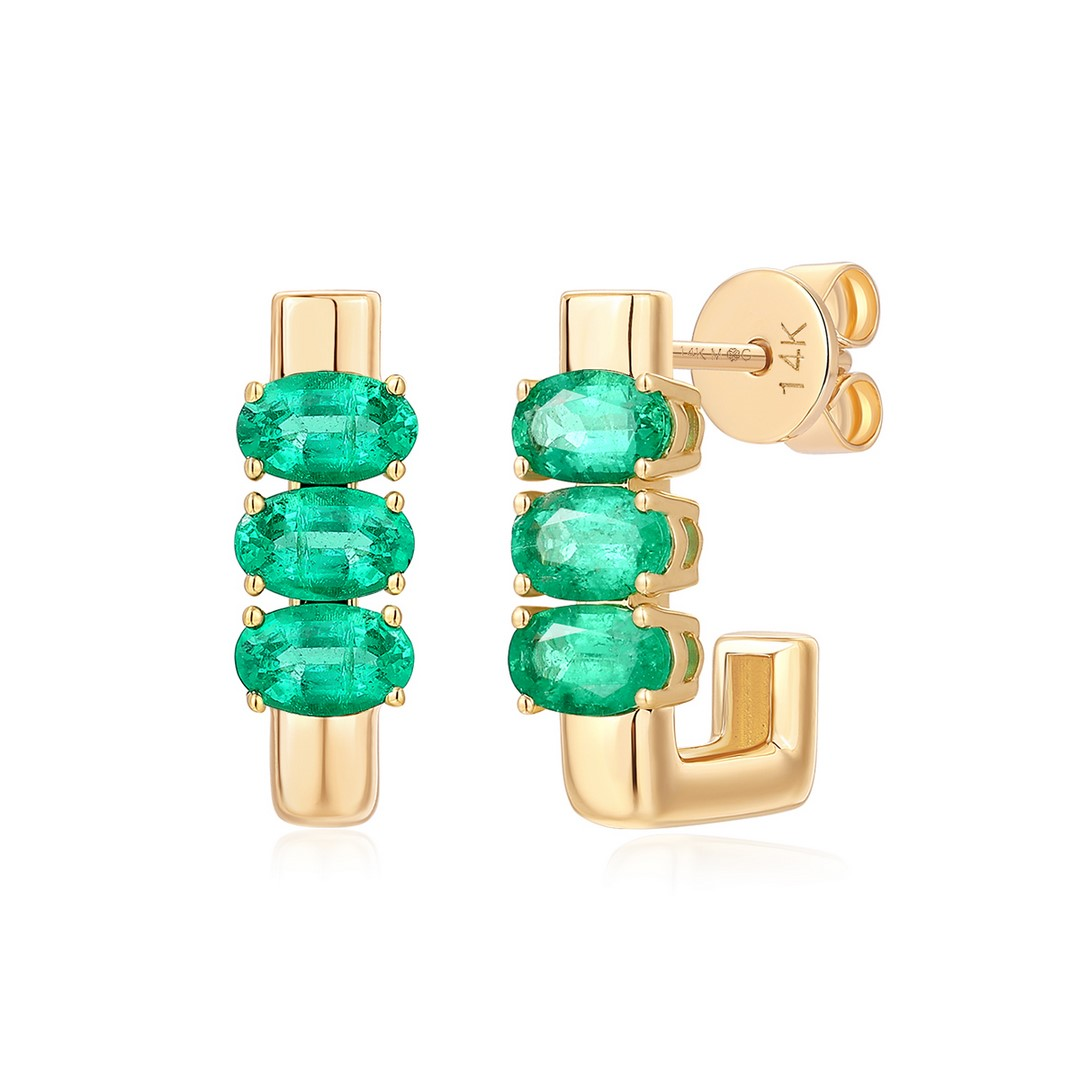 Crafted in 14K yellow gold, these earrings showcase 2.2 carats of carefully selected emeralds. The verdant stones bring deep color and organic variation, balanced by the warm glow of gold for a refined but grounded feel.