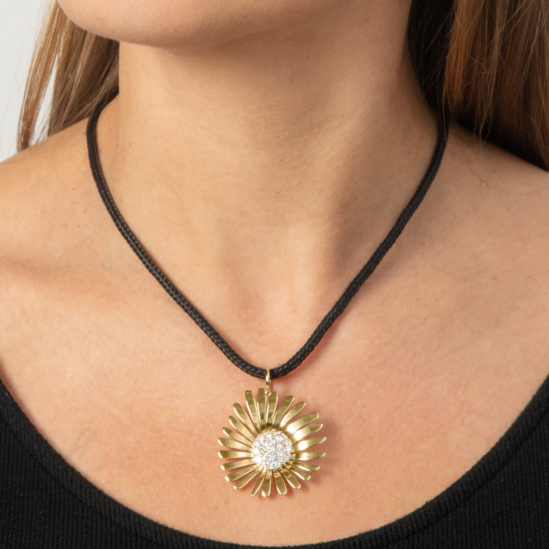 • Daisy pendant set with Diamonds (1.52ct) in 14k yellow gold