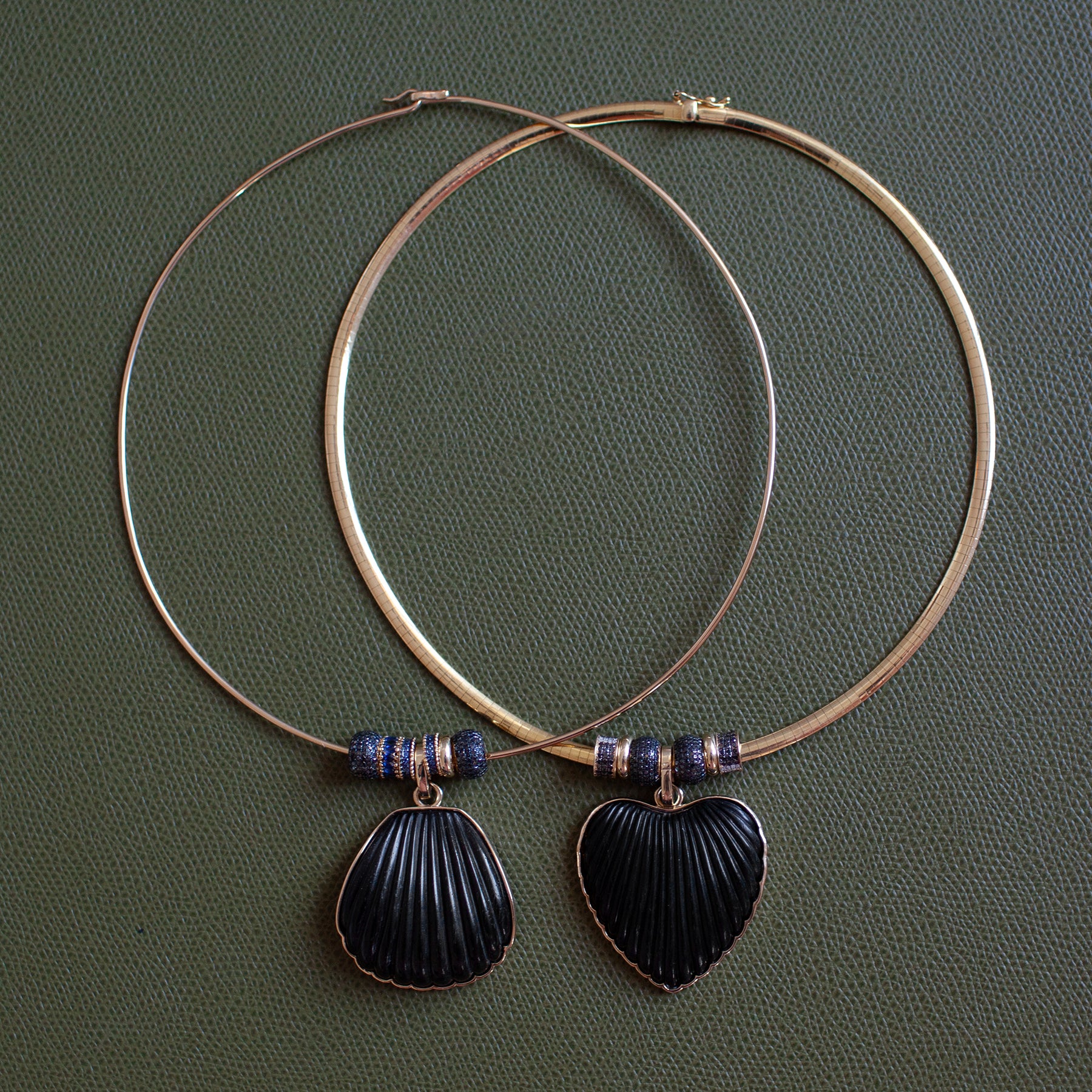 Antonia Fluted Ebony Oversized Heart Necklace with Beads on Choker